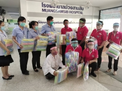 5 เมษายน 2563 โรงพยาบาลม่วงสามสิบ ขอขอบพระคุณ ท่านสจ.พิมพ์ผกา พลสมัคร, ท่านเชิดศักดิ์ โภคกุลกานนท์พร้อมกับทีมงาน ได้มอบ ชุดอะคริลิค บล็อก จำนวน 2 ชุด และแอลกอฮอล์ 75% จำนวน 9 แกลลอน ให้กับโรงพยาบาลม่วงสามสิบ เพื่อใช้ในการดูแลผู้ป่วย