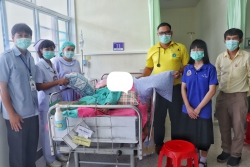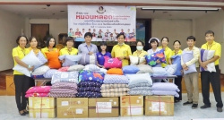 นายแพทย์ประจักษ์ สีลาชาติ ผู้อำนวยการโรงพยาบาลม่วงสามสิบและเจ้าหน้าที่โรงพยาบาลม่วงสามสิบรับมอบสิ่งของบริจาค หมอนหลอดกาแฟ สำหรับผู้ป่วยติดเตียงป้องกันแผลกดทับ จำนวน 63 ใบ จาก น.ส.จีระนุช สองศรี ตัวแทนนักเรียนกลุ่มจิตอาสา ชั้น มัธยมศึกษาปีที่ 4/4 โรงเรียนมหิดลวิทยานุสรณ์