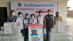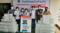 คุณศักดิ์ดา ขัมภะกิจ(ทนายบอย) ที่ได้มอบน้ำดื่ม เพื่อเป็นขวัญและกำลังใจตนเองของบุคลากรด่านหน้า และเพื่อสนับสนุนการฉีดวัคซีนโควิด-19 ในประชาชนชาวอำเภอม่วงสามสิบ